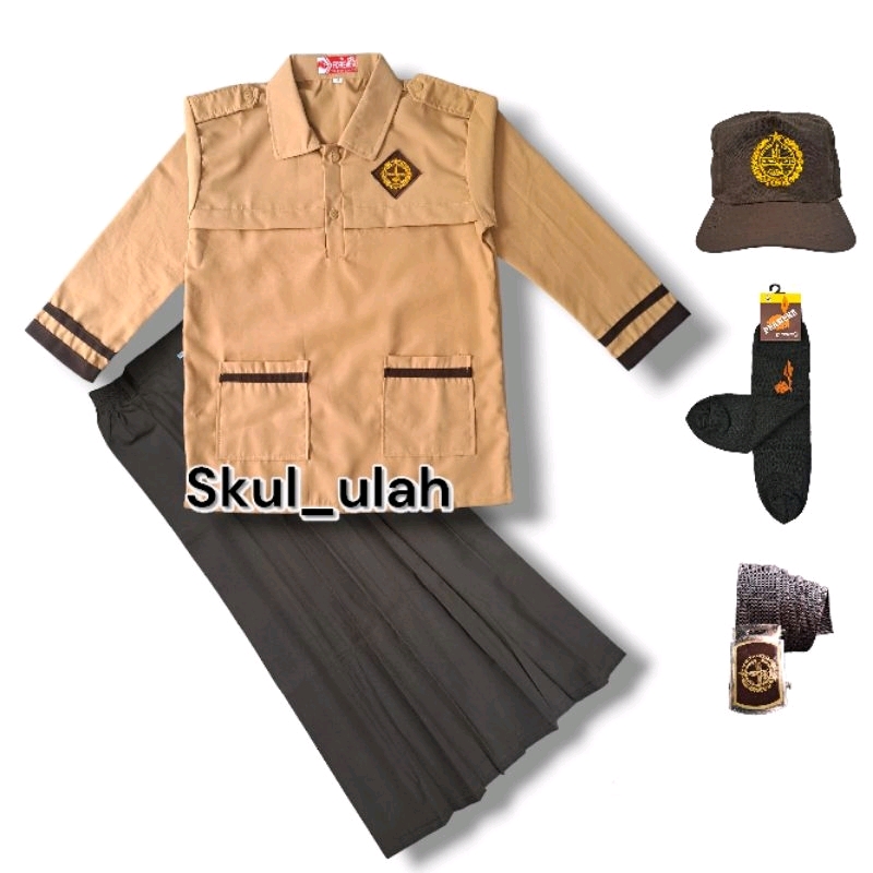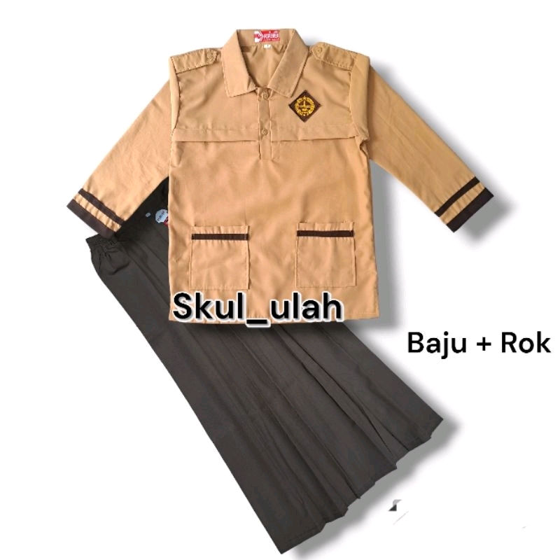 Setelan Seragam Sekolah Perempuan Baju Pramuka Siaga Panjang Rok Rempel